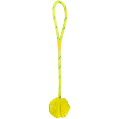 FLOATING: The TRIXIE ball on a rope made of natural rubber stays on the water surface and is perfect for games in the water FOR PULLING & APPORTIONING: The robust dog play ball with rope enables a variety of pulling and throwing games - ideal for joint activities SAFE HANDLE: The long throwing rope with a wrist strap at the end makes it easy to handle and facilitates throwing and playing together with your four-legged friend ROBUST MATERIAL: The natural rubber ball is hard-wearing and bite-resistant - perfect for dogs that like to chew and tug LUMINOUS COLOUR: Designed in eye-catching lime green, the throwing toy is also easy to find on meadows or in water