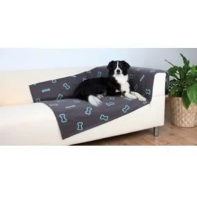 The double-lined Barney polar fleece cover protects your furniture from dirt and pet hair. Its taupe color with a blue bone fits perfectly into your interior. Hand washable at 30°C, it measures 150 x 100 cm, ideal for your dog's comfort.