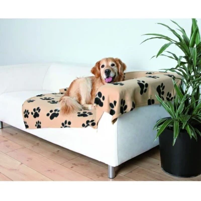 The TRIXIE Barney double fleece blanket measures 150 × 100 cm and is ideal for your dog. Made of fleece, it is beige with black paw print patterns. Perfect for the couch or the floor, it is machine washable at 30°.