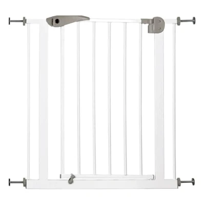 Equally suitable for large dogs metal, varnished easy fastening with 4 clamping devices (no screwing, no drilling holes) Closes off access to rooms, stairs etc, hinged metal door opens to both sides security lock can be opened and closed with one hand Extension elements available separately Model number: 43787