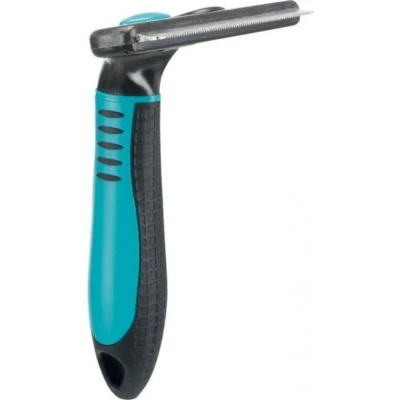TRIXIE Carding curry comb for removing loose undercoat interchangeable head stainless steel blade rubberised plastic handle black/blue 8 x 14 cm 24173