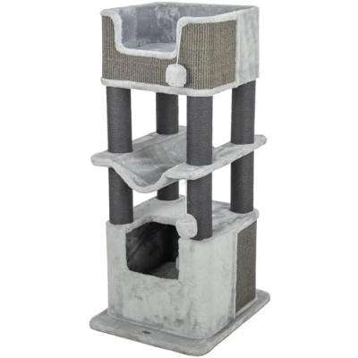 TRIXIE Cat Tree Xxl Lucano Tower For Large Cats With Plush Condo, 110 Cm, Grey, Comfortable & Stable 48160