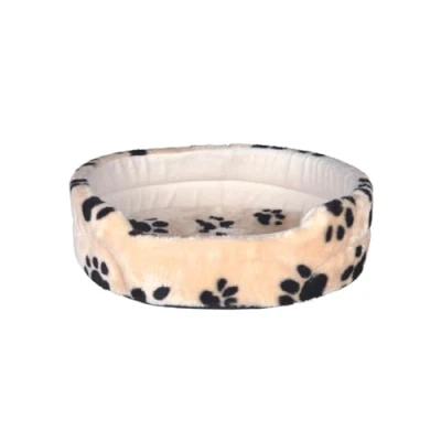 Trixie Charly Plush Dog Bed, Small. 50X43cm. Beige With Dark Paw Prints.