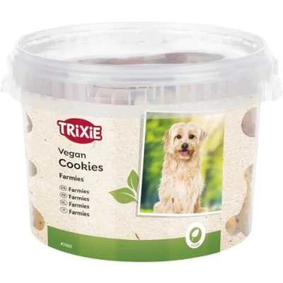 DELICIOUS STOCK: TRIXIE Farmies dog biscuits offer your dog a large quantity of tasty treats in a 1.3 kg bucket, providing your dog with snacks for a long time to come. VEGAN RECIPE: The dog biscuits are made entirely without animal ingredients and are ideal for a conscious, meat-free diet. PRACTICAL STORAGE: The resealable bucket keeps the treats fresh and ensures easy handling in everyday use. IDEAL FOR TRAINING: The crunchy dog snacks are easy to portion and ideal for rewarding your four-legged friend during training and play.