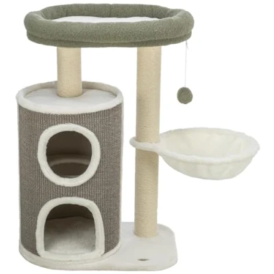Essential for your cat: a scratching post is essential, especially for domestic and apartment cats. Scratching posts offer your cat a natural way to care for their claws Highest comfort: the cat tree from TRIXIE offers your furry nose a variety of cosy viewing and retreats at different heights. Ideal for the well-being of your cat For more activity: in addition to the many lying options, the cat trees still have enough play and scratch options to keep your pet entertained and prevent boredom Stable and durable: thanks to the high-quality and sturdy materials, the cat tree has a firm stand. So nothing stands in the way of extended play and scratching units Simple design: thanks to the combination of chic white and simple green/grey accents, the modern cat tree adapts easily to most interior styles