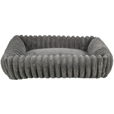 TRIXIE dog bed Lonni 10.2 x 7.9 in grey rectangular cuddle with soft cord look plush, basket for small dogs, fixed cushion, non slip bottom & washable 374020