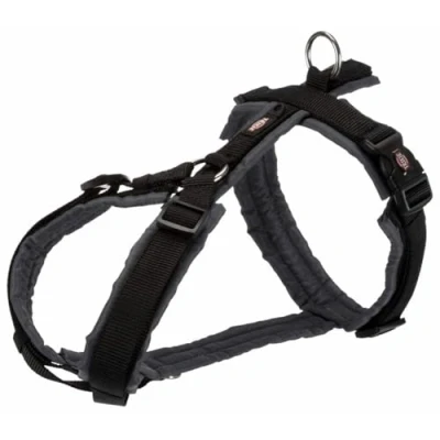 Features soft padding all around the harness Neck and tummy straps are continuously adjustable Additional ring for attaching a leash in the chest area Loop for attaching a medallion or flasher Provide a safe and comfortable feeling