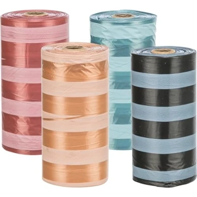 PRACTICAL SET: Four rolls with 20 dog waste bags each ensure a sufficient supply and are ideal for travelling. COMPATIBLE WITH DISPENSERS: Suitable for all standard roll bag dispensers so that the bags can be refilled easily. Tear-resistant MATERIAL: Made from durable plastic, making it easy to pick up and dispose of faeces. VARIOUS COLOURS: The bags come in different colours to add variety to every walk. HYGIENIC AND PRACTICAL: The bags offer a clean and simple solution for faeces disposal and keep the environment clean.