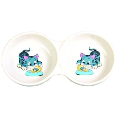 Trixie Double Diner Ceramic Cat Bowl With Print
