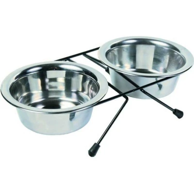 This Eat on Feet stainless steel bowl set with non-slip feet is ideal for your dog. It is made up of 2 bowls with a capacity of 0.45 liters each and a diameter of 12 cm. The non-slip feet ensure optimal stability during your dog's meals. Made by the TRIXIE brand, this set is specially designed for dogs.