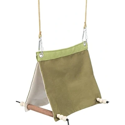 TRIXIE hanging bird tent made of cotton and wood two perches safety hooks 16 x 18 20 cm green 58998
