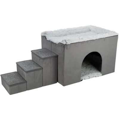 Upholstered lying surface with removable bed (90 × 60 cm) Reversible cushion with foam filling Can be folded and stowed away to save space Also optimal as an extra bed Velvet haptic/longhair plush