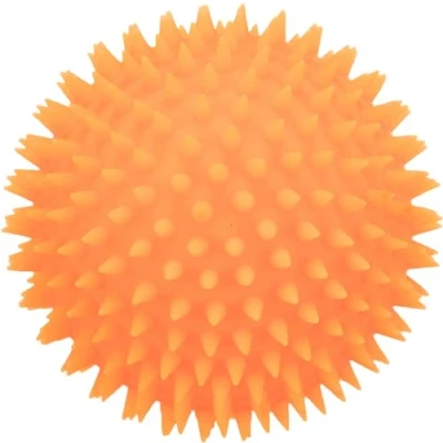 The TRIXIE hedgehog ball for dogs is made of vinyl and has a diameter of 7 cm, making it similar in size to a tennis ball The dog toy has an integrated squeaker and thus encourages play Thanks to the bright colour, the ball is also suitable for fetching, as it is always easy to find