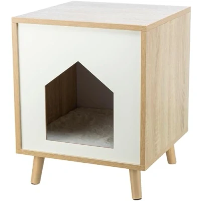 TRIXIE Isa Indoor Cat Condo, Modern Bed Side Table & Nightstand, Hideaway Cave with Cozy Cushion