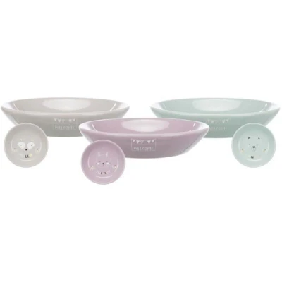 TRIXIE Junior 25128 Flat Ceramic Bowl 0.2 L/Diameter 14 cm White/Pink/Green