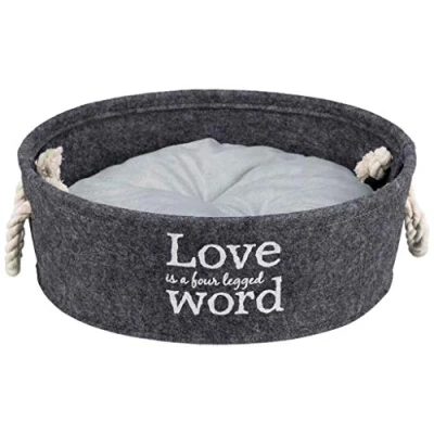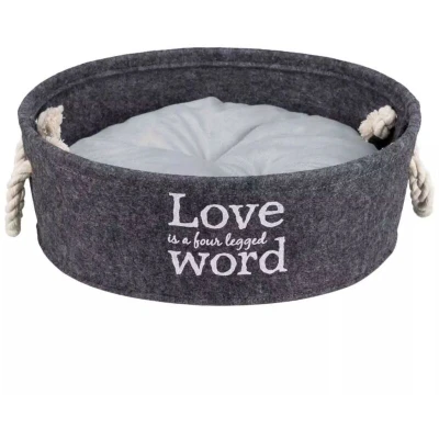 Lian bed - Ø37cm - Made of felt - Stable shape thanks to reinforced edges - Insulating and dirt repellent - Cushion covered with plush and polyester fiber filling, quilted - With decorative handles in twisted cotton cord - Colour: gray - For dogs.