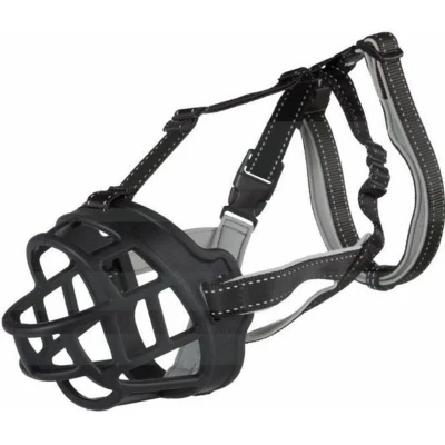 Amazonsecure due to threefold fastening. continuously adjustable forehead strap and neck strap as well as nape loop, with reflective stripes. Particularly comfortable to wear due to ergonomic fit, flexible silicone that is stable in shape and neoprene-padded straps in face and neck areas. Muzzles prevent biting, no problems with panting, drinking and feeding treats.