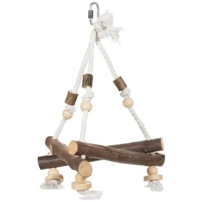 Swing on a rope offers entertainment and health benefits for your pet bird Swing allows your bird to exercise through play while the wooden slices and beads Made of natural wood material Keep your bird's beak and claws trim It has triangular shape