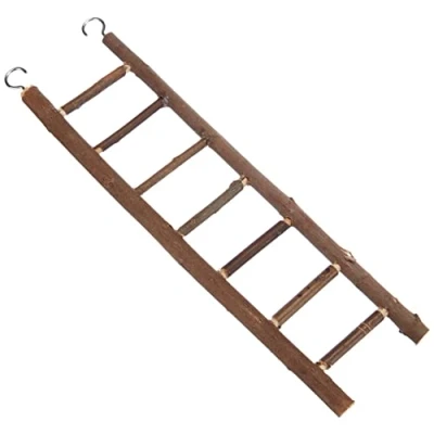 Ladder makes a great toy for pet birds such as canaries, parakeets and finches Made from real wood material Birds can climb the ladder, sit on the perches and gnaw the bark Can be attached easily with the attached metal clip Height: 30 cm