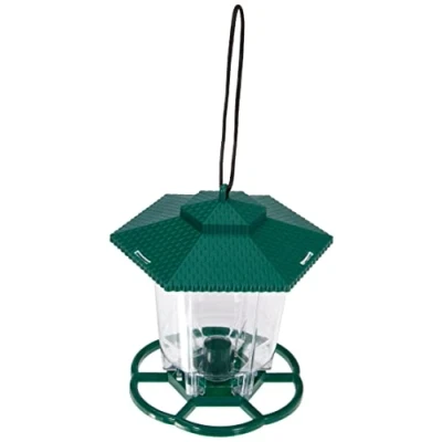 Plastic feeding lantern With large landing surface Keeps food clean and dry Removable cap for easy refilling Handy to use dispenser