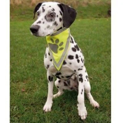 Safety bandana for dogs Fitted with reflecting rim Made with polyester Easy put on due to peel fastening Reflective stripes and paw print