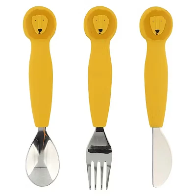 Trixie Silicone Cutlery Set 3 Pack Mr. Lion Toddler Utensils Soft, Durable, and Easy to Grip Safe Tableware for Kids Learning Eat