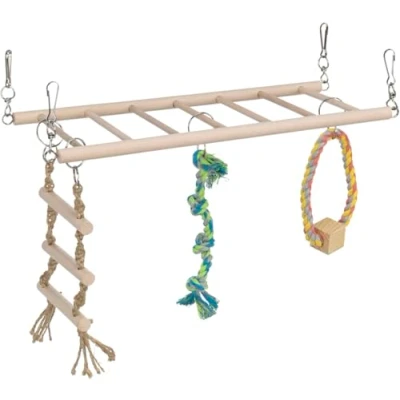 For hanging in the cage Wooden ladder with rope ladder Play rope and rope ring with wooden block