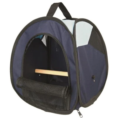 ManoManoTRIXIE transport bag in dark blue polyester, ideal for the veterinarian. With removable perch, mesh for air circulation, side pocket, and removable base. Dimensions: 27x32x27cm, compact and practical for small birds.