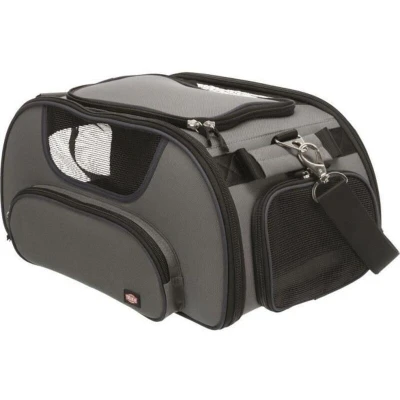 Transport your dog safely with the TRIXIE Wings airline bag. This polyester bag measures 28 x 23 x 46 cm and is suitable for small dogs, making it ideal for air travel. Its main color is gray, and it is also available in blue. The bag is designed for indoor use and features a carrying handle.