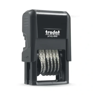 The updated model Printy 4846 provides the same great impression but in its new compact and durable body Ideal for stamping numbers onto your documents helping to organise paperwork The Trodat black ink is indelible according to the criteria of DIN ISO 14145-2 The smooth mechanism of the stamper ensures frequent use won't cause an issue Primarily manufactured using post-consumer plastics, minimizing its carbon footprint and contributing to a more sustainable product choice