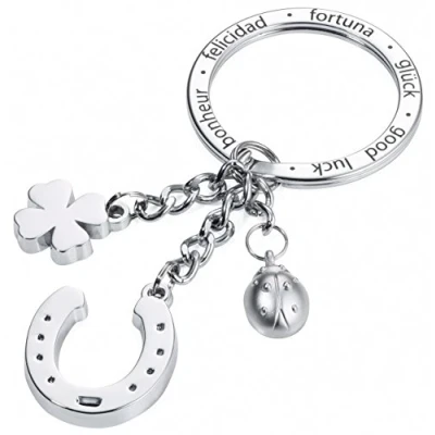 Troika Horseshoe Shamrock Ladybird Lucky Charm Keyring Enamel Cast Metal Chrome Plated Silver