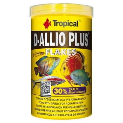 Tropical D ALLIO PLUS 1000ml / 200g multi ingredient flakes with garlic for aquarium fish, including discus and marine fish