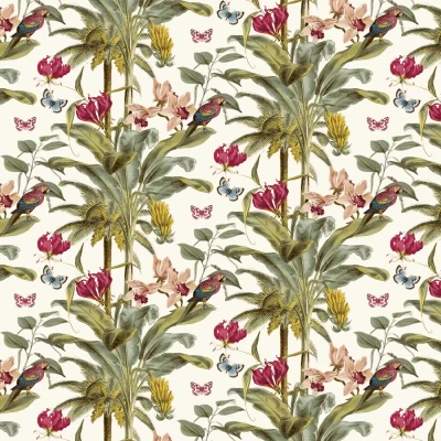 Beautiful butterflies, perching parrots and luscious jungle plants fill this design with bold colour and stunning detail.