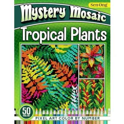 Tropical Plants Mystery Mosaics Color by Number: 50 Pixel Art Scenes of Verdant Beauty