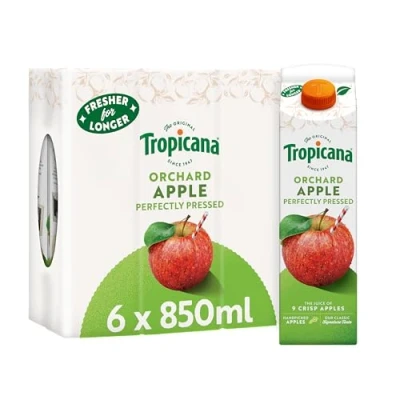100% PRESSED: Tropicana Apple Juice is made from 9 perfectly handpicked, crisp apples, which are expertly pressed to extract the purest, freshest juice possible. A true taste of nature, bottled for your enjoyment. FROM FLAVOURFUL APPLES: Experience the exceptional, sweet, and refreshing taste of Tropicana Apple Juice, which is rich in Vitamin C and packed with freshly pressed apples. Whether you're starting your day or enjoying a midday refreshment, it offers that perfect balance of natural sweetness and revitalising taste, helping you feel energised and refreshed throughout the day. FRESHER FOR LONGER: Tropicana Apple Juice is now fresher for longer. With its convenient long shelf life, it’s easy to store in your cupboard until you’re ready to enjoy it. Serve chilled for the perfect, refreshing drink, whether at home, at work, or on the go. It’s the easy, convenient way to enjoy the fresh, fruity taste of Tropicana anytime. A 75 YEAR EXPERIENCE: Tropicana has over 75 years of expertise in creating the finest fruit juices, and our passion for quality and innovation shines through in every bottle. We carefully source the best apples, ensuring that only the juiciest, crispiest fruit is selected for pressing. Our dedication to producing the highest-quality juice has made us a trusted name, known for delivering freshness and taste with every sip. PIONEERS OF QUALITY FRUIT JUICE SINCE 1947: No-one understands juice quite like Tropicana. Perfect for any time of day – Start your morning with a crisp glass at breakfast, enjoy as a refreshing midday pick-me-up, or use in mocktails or cocktails.