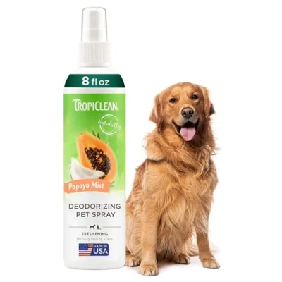 PET ODOUR ELIMINATOR - TropiClean Deodorising Pet Spray breaks down pet odours at their source, effectively deodorising your pet and home SWEET SCENT – The long-lasting sweet scent of papaya will leave them smelling fresh and ready for cuddles SAFE DEODORISER – Paraben free and dye free SOOTHES & CONDITIONS – Helps soothe and condition their coat, leaving them soft and smelling fresh FAMILY OWNED - TropiClean products are proudly made in the U.S.A by pet lovers like you MADE WITH NATURALLY DERIVED INGREDIENTS – TropiClean defines ingredients to be naturally derived if they are either naturally-occurring raw materials or are adapted from naturally-occurring plant or mineral based raw materials FOR DOG AND CAT USE - Safe for use on dogs and cats 12 weeks and older, when used as directed TropiClean Pet Products offers a full range of naturally derived dog and cat products including TropiClean Grooming Products, TropiClean SPA by TropiClean, TropiClean OxyMed, TropiClean PerfectFur, and TropiClean Enticers and TropiClean Fresh Breath Oral Care and Dental Products Contains one (1) 236ml spray bottle
