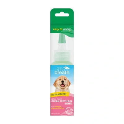 TropiClean Fresh Breath Puppy Teeth Cleaning Gel No Brushing Dental Care Freshener Oral Complete Solution Helps Remove Plaque & Tartar, For Puppies, 59ml