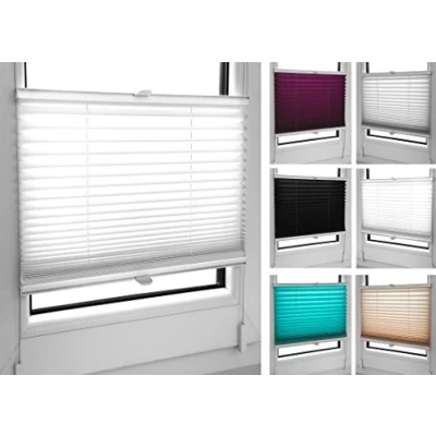 Size Width : 85cm Length/Drop: 100cm. Longer drops of 150 and 200cm are available in our Amazon Store Colour: White Material: 100% pre-folded opaque polyester fabric The pleated blind, also known as a plisse blind, is a smart design that is both attractive and functional. The blind has two aluminium rails between which the pleated fabric is stretched. The blind can be moved from both the top and bottom of the window, allowing you to control the shade provided.