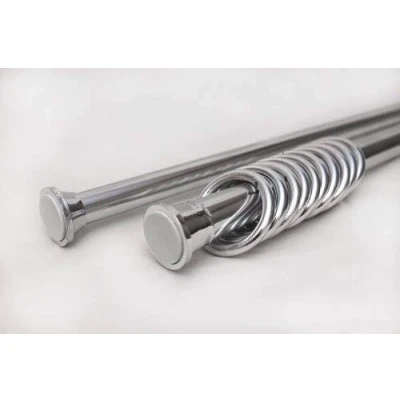 Size: Telescopic spring loaded rail extendable from 140cm to 250cm - Anti skid pads added for secure positioning Colour: Chrome (More colours available in our Amazon Store) Material: made from 27mm diameter aluminum alloys Includes: Installation without drilling and screw -anti-slip pads on the end pieces -fully adjustable Made in Europe