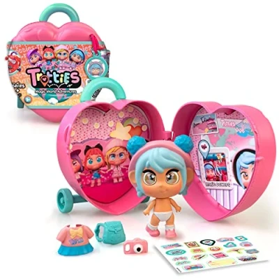 Play with Mini Mia and her Trolley: Mini Mia 10cm articulated doll with original clothing and accessories as in the series. The perfect size for any occasion, whether it be school, travel or everyday use Unique personality: Trotties dolls emoji-eyes express up to 3 different emotions (cute, love it and amazing eyes) that change when you press it on the head, making it easy for children to choose their favourite and create their own stories and adventures. Their dressing style reflects their personality and always come with a travel bag Collect all the Trotties: The Trotties are 4 best friends that come from different cities, each one has a distinct personality and together they form an incredible team to save the world! Thanks to their teamwork and Pinky promise, they solve problems using their unique superpowers. Great gift idea: Trotties Emoti eyes dolls make a great gift for children aged 3 years and above, especially on for birthdays, holidays or any special occasion Educational: Trotties dolls are perfect for role-playing, storytelling and socialising, helping children develop important skills such as empathy, communication and creativity, Manufacturer: Famosa