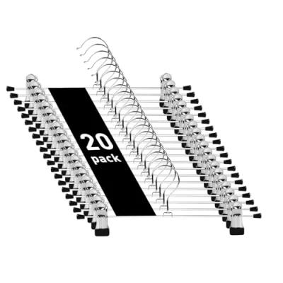 Trouser Hanger, WEIDMAX Pant Hangers 20 Pcs Space Saving Skirt with Clips Adjustable Non Slip Coat Suit Heavy Duty Chrome Clothes Hook