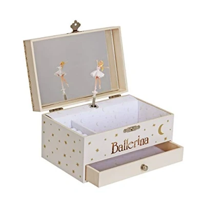 A music box for storing her jewellery: This music box with a drawer, a large mirror and a ring sizer will amaze a young girl who will store her jewellery & secrets. Operate the crank and the Ballerina figure magically comes alive to the sound of music! Ballerina is a magical and elegant French Cartoon. This is the story of a little girl at the beginning of the 20th century called Félicie, who dreams of becoming a star dancer at the Paris Opera! Ideal from birth: this musical box will look great to decorate the child's room. Awaken your child: introduce your little ones to classical music with its soft lullaby inspired by Tchaikovsky's "Swan Lake". Ballerina figure spins to the sound of music. A TIMELESS GIFT: A music box is a timeless object that is treasured as a symbol of childhood. His melody and the accompanying memories will remain engraved in the memory of the child for a long time. GLOW IN THE NIGHT: When charged with light, this musical box glows in the night to accompany the girl into the land of dreams. A reassuring little light in the secret of the sleeping room. A FERIC BRAND: Immerse yourself in the magical world of TROUSSELIER with their music boxes and jewelry boxes, night lights, comforters, musical mobiles, rattles and other toys that will rock the childhood of your little ones.