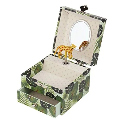 A MUSICAL BOX FOR STORING HIS TREASURES: This music box in the shape of a cube and with a drawer will amaze the child who will store his treasures. Operate the crank and the Cheetah figure magically comes alive to the sound of music! Ideal from birth: this musical box will look great to decorate the child's room. Awaken your child: introduce your little ones to classical music with its soft lullaby inspired by Tchaikovsky's "Sleeping Beauty". The Cheetah figure spins to the sound of music. A TIMELESS GIFT: A music box is a timeless object that is treasured as a symbol of childhood. His melody and the accompanying memories will remain engraved in the memory of the child for a long time. A FERIC BRAND: Immerse yourself in the magical world of TROUSSELIER with their music boxes and jewelry boxes, night lights, comforters, musical mobiles, rattles and other toys that will rock the childhood of your little ones.