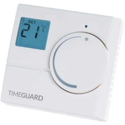 Electronic room thermostat with digital temperature display, providing automatic temperature control for all central heating applications. Simple to install surface mount design, with electronic accuracy to improve system efficiency and help reduce running costs. Easily adjustable dial. Output LED (illuminated on call for heat).