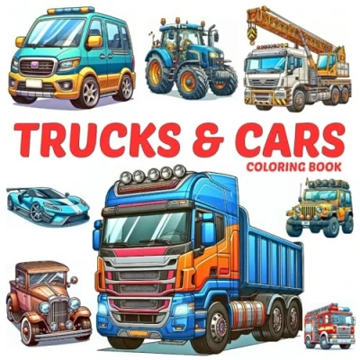 Trucks and Cars coloring book for Kids Adults: 50 Fun Cool Pages of Trucks, Cars, Tractors & More Boys Girls Who Love Vehicles truck