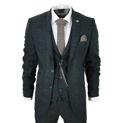 Sharp, sleek and sophisticated, look the part with this premium 3 piece Olive Green tweed suit, that features a slim fit cut, with a closer fit across the chest and narrower tailored trousers. the two-button jacket hangs beautifully and has a half canvas construction that moulds to your body shape the more you wear it. Contrasting flap pockets, buttoned cuffs and a single back vent lend the suit a classic touch of refinement. A matching tweed waistcoat completes the 3-piece with a single breasted down style with classic tailored pockets and a back adjuster to ensure you can create your ideal fit. The suit is evergreen and contemporary at the same time and allowing you to look the best all day. Pair it with a matching waistcoat, a white shirt and shoes for a dapper finish.Perfect For Any Smart Formal Traditional Vintage Retro Themed Occasions, Such As Weddings, Proms Or Parties!Tailored Fit (inbetween Slim & Regular) Many More Styles & Colours Available in Store!