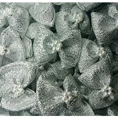 Trucraft 3.5cm Metallic Ribbon Pearl Craft Bows Silver Pack of 10