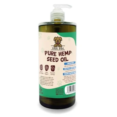 True dog Hemp Oil for Dogs Natural & Cat Feed Supplement with omega 3, 6, 9 support hip, joint calming 100% Pure Cold Pressed (1ltr)