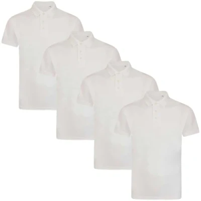 True Face Mens Polo Shirt Plain Tshirt Short Sleeve Summer Work Pique T Workwear Adult Tee Classic Casual Top White 4 Pack S