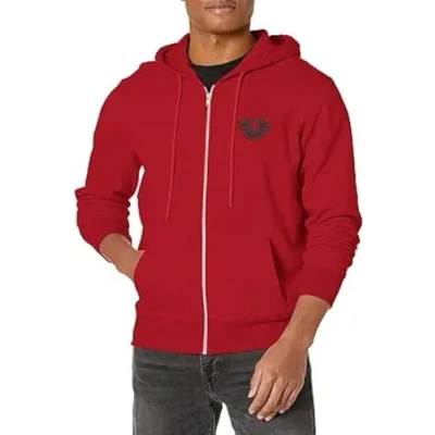 True Religion Men's Core Zip Up Hoodie, Red, XXXL